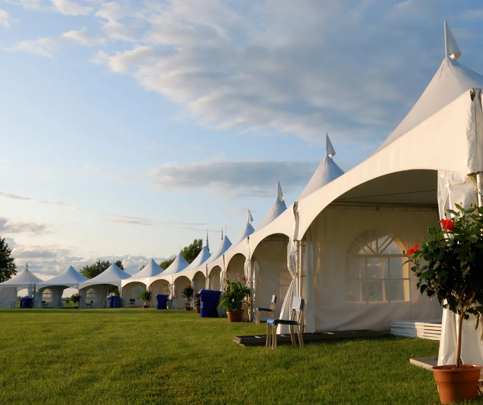Here at PEAKS we use high top Marquee style tents to create the perfect footprint for your event. All tent rentals come with free set-up and breakdown included.